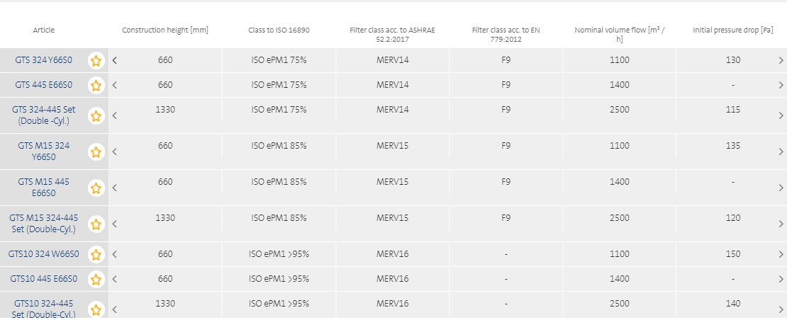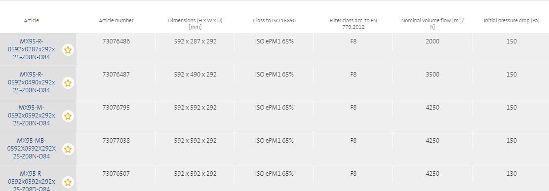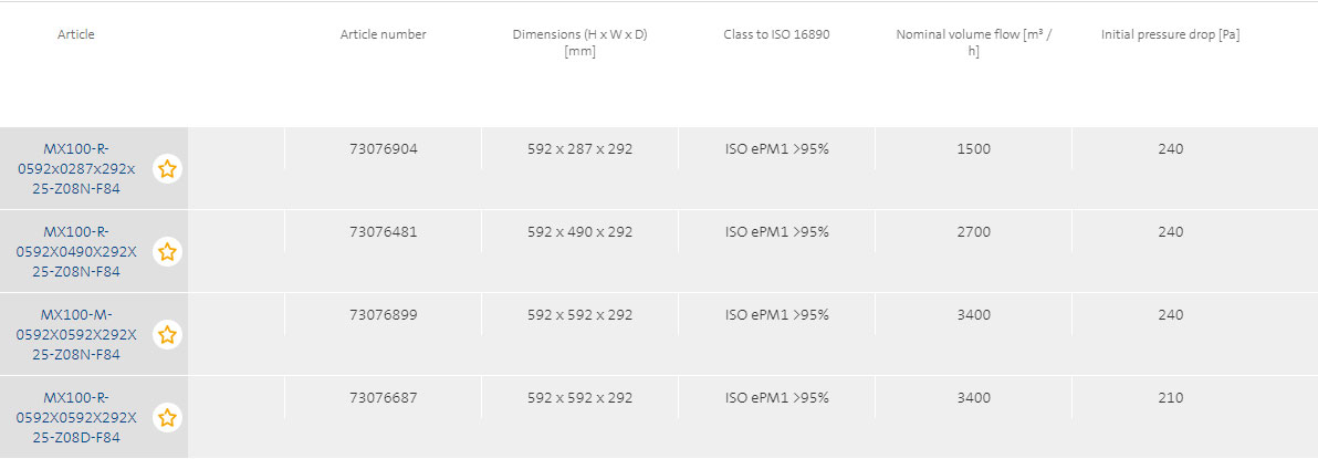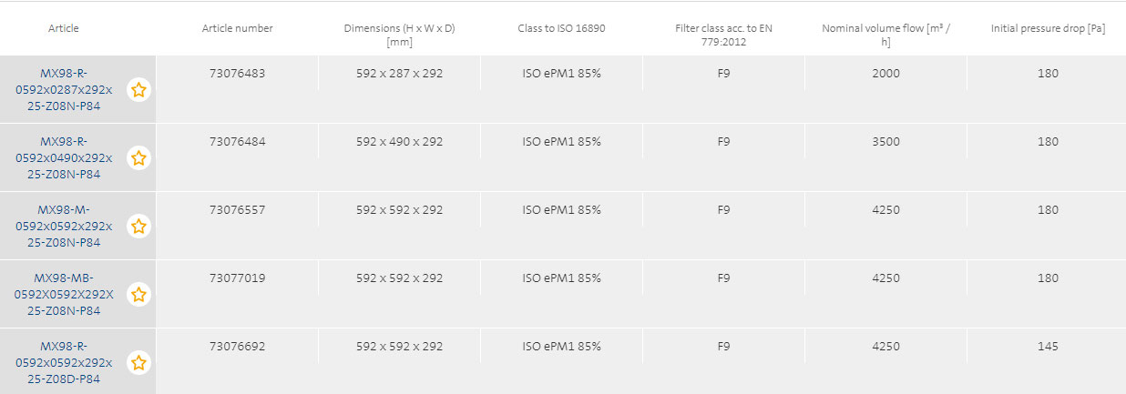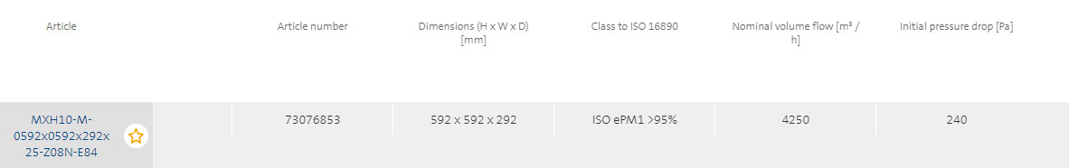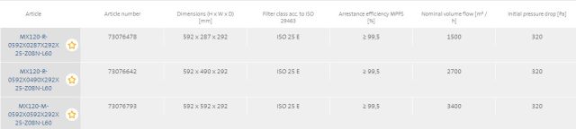 - The advanced filter medium offers efficiencies of class E 10 or E 12 level, low pressure drop and high cost efficiency.
