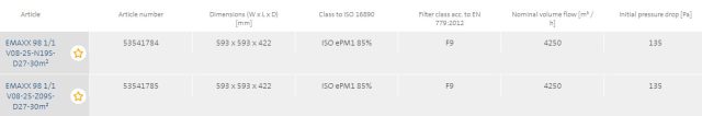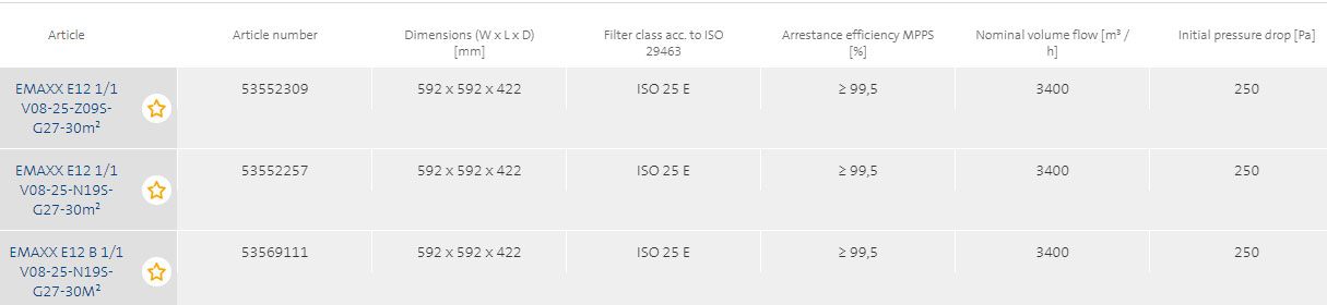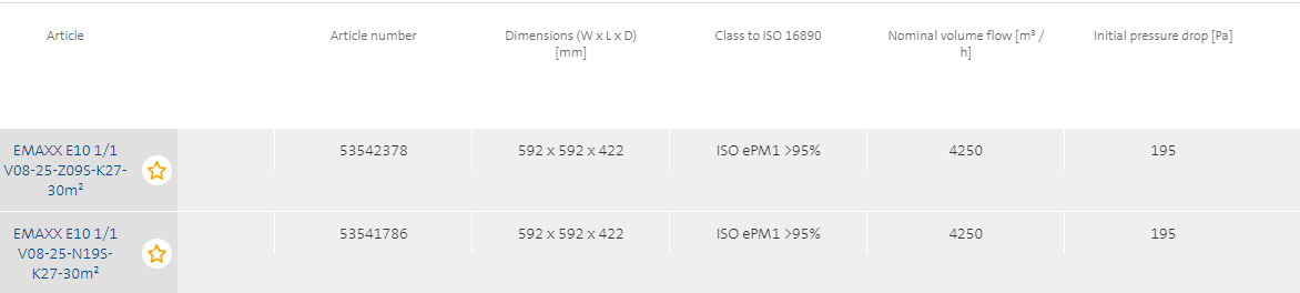 - The low average pressure drop, i.e. a very slow increase in the pressure drop, ensures a long useful lifetime, with cost-efficient and reliable operation.
